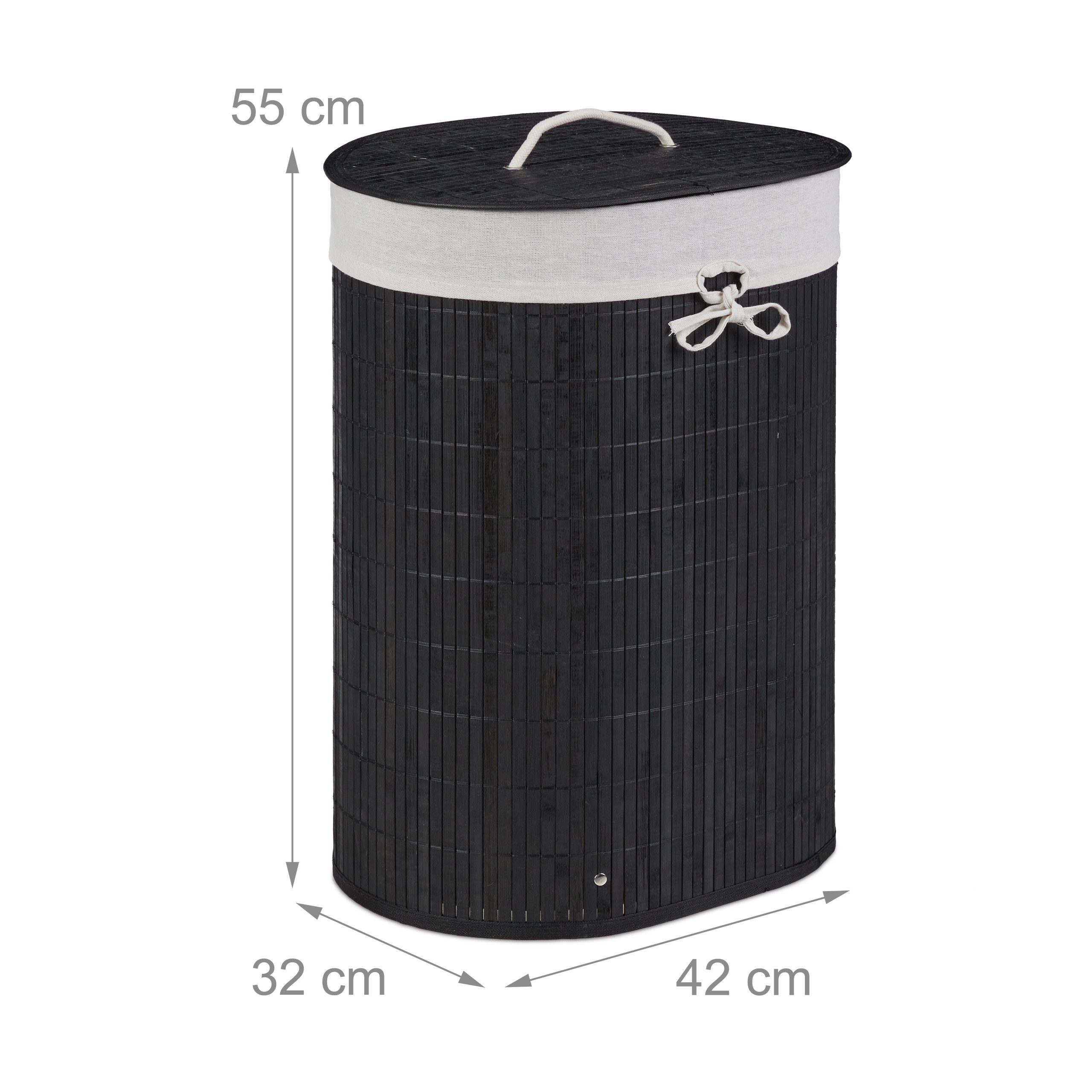 - Matmenys: 55x42x32 cm – optimalus dydis, leidžiantis talpinti pakankamai skalbinių, tačiau neužimantis per daug vietos.