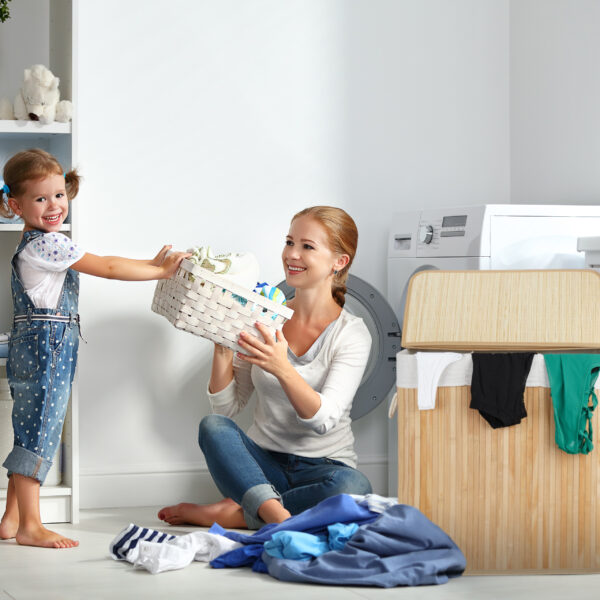 - Trijų skyrių skirstytuvas: Patogiai rūšiuokite skalbinius į šviesius, tamsius ir spalvotus, kad išvengtumėte spalvos pakitimų skalbimo metu.