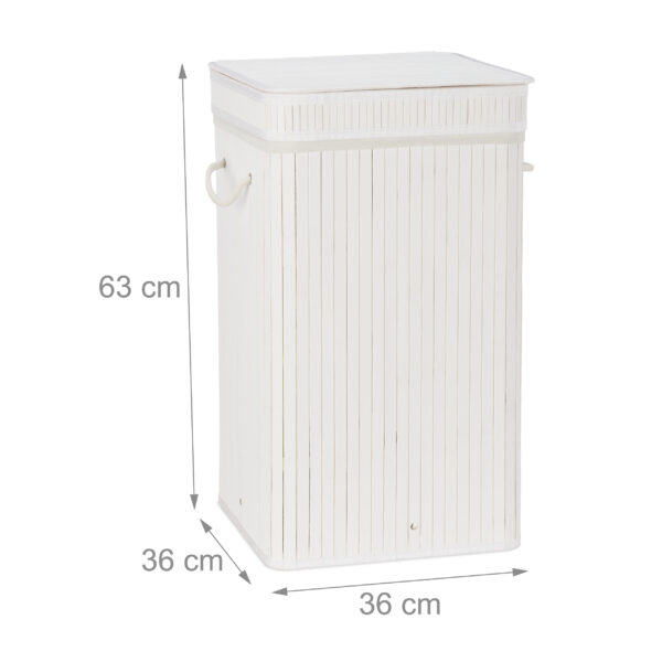 • Kompaktiškas dizainas: Skalbinių krepšelis yra 63x36x36 cm dydžio, todėl lengvai tilps bet kurioje jūsų namų vietoje.