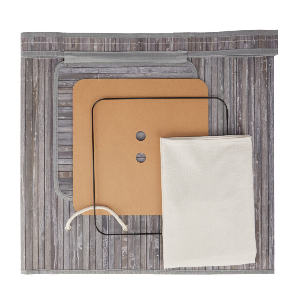 Šis pilkos ir baltos spalvos skalbinių krepšelis yra ne tik praktiškas, bet ir stilingas sprendimas jūsų namams. Pasirinkite kokybę ir patogumą su šiuo išskirtiniu bambuko gaminiu.