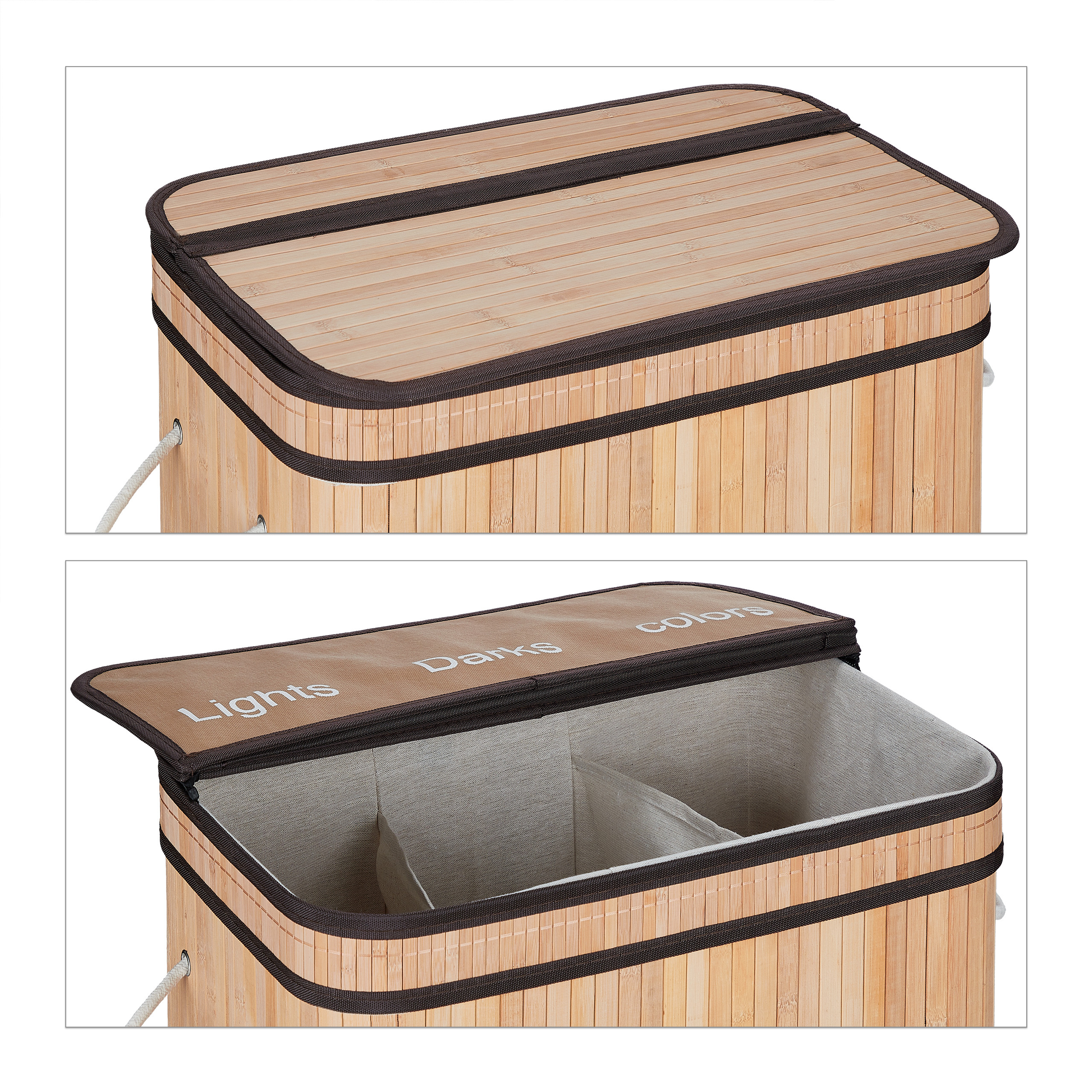 Šis skalbinių krepšelis yra ne tik praktiškas, bet ir estetiškai patrauklus, todėl puikiai tiks bet kuriame interjere. Jo šviesiai rudos ir tamsiai rudos spalvos derinys suteikia elegancijos ir šilumos Jūsų namams. Pasirinkite šį krepšelį ir mėgaukitės tvarkingu bei stilingu skalbinių rūšiavimu kiekvieną dieną!