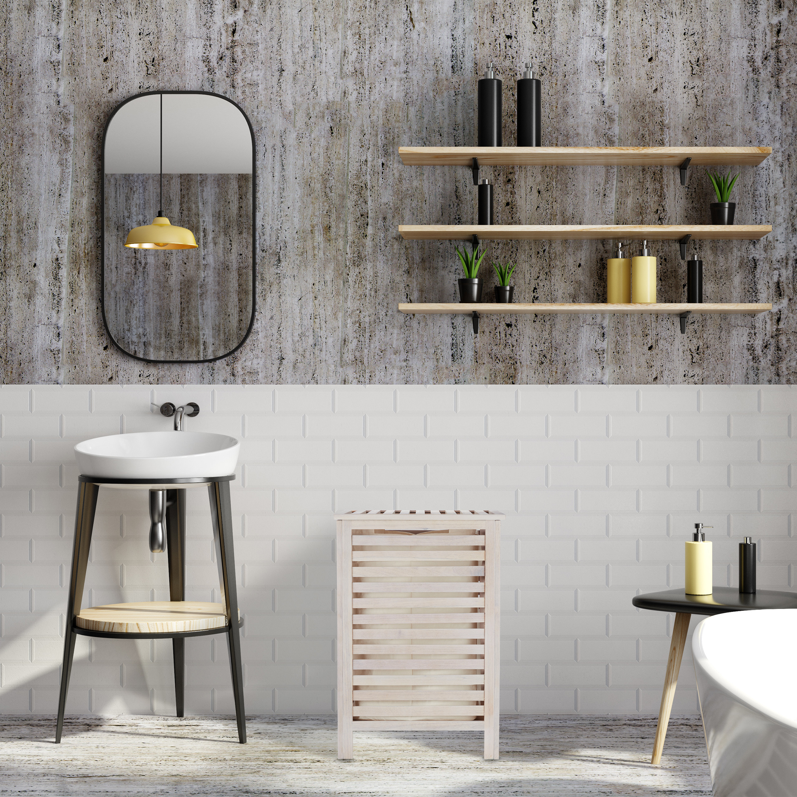 - Spalva: Balta, suteikianti švaros ir šviesos pojūtį.