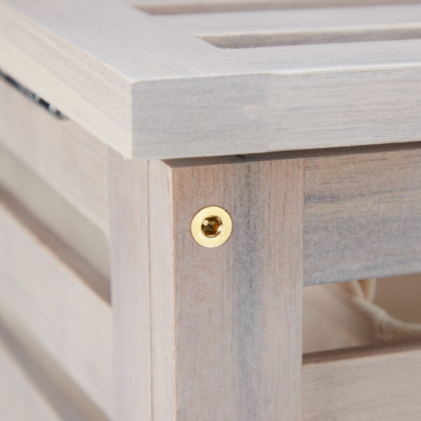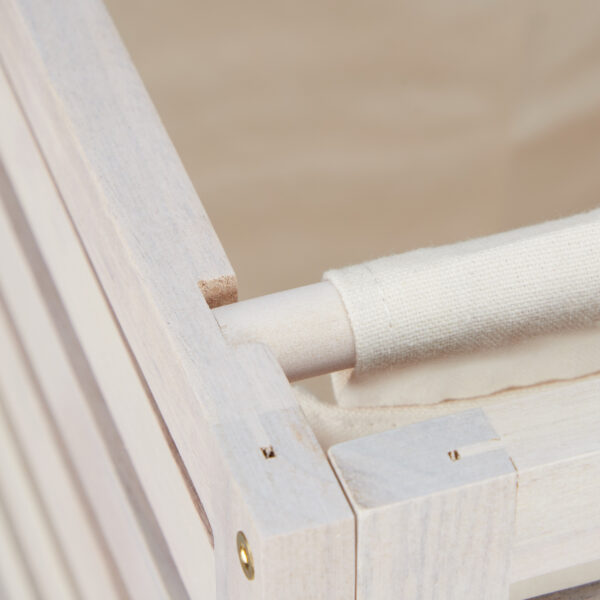 Skalbinių maišelį galima lengvai išimti ir nunešti tiesiai į skalbimo mašiną, taip palengvinant skalbimo procesą. Dėl savo baltos vintažinės išvaizdos, šis krepšelis puikiai dera su kaimo ir jūriniu interjeru, tačiau taip pat gali būti lengvai pritaikomas ir kitokio stiliaus namuose.