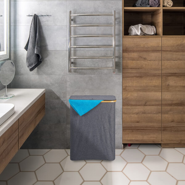 Įneškite elegancijos ir funkcionalumo į savo namus su šiuolaikišku skalbinių krepšeliu, kuris puikiai tiks tiek vonios kambariui, tiek miegamajam. Šis krepšelis ne tik padės tvarkingai laikyti nešvarius skalbinius, bet ir taps stilingu interjero akcentu.