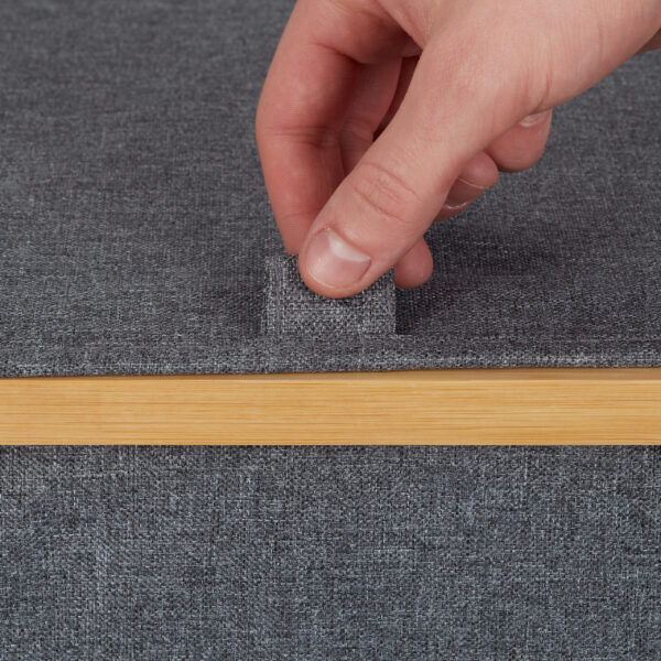 - Medžiagos: Pagamintas iš kokybiško audinio ir natūralių bambuko elementų, suteikiančių natūralumo ir šilumos pojūtį.