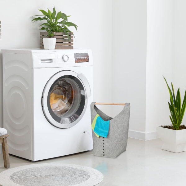 - Patogumas: Medinė rankena leidžia lengvai ir be vargo transportuoti krepšelį į skalbimo mašiną ir atgal.