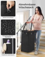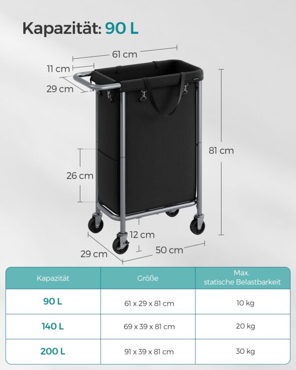 Šis elegantiškas ir funkcionalus skalbinių krepšelis yra puikus pasirinkimas tiems, kurie vertina patogumą ir stilių. Su 140 litrų talpa, jis puikiai tiks tiek mažoms, tiek didelėms šeimoms. Juodos ir sidabrinės spalvos derinys suteikia modernumo ir prabangos jausmą, todėl šis krepšelis puikiai įsilies į bet kokį interjerą.