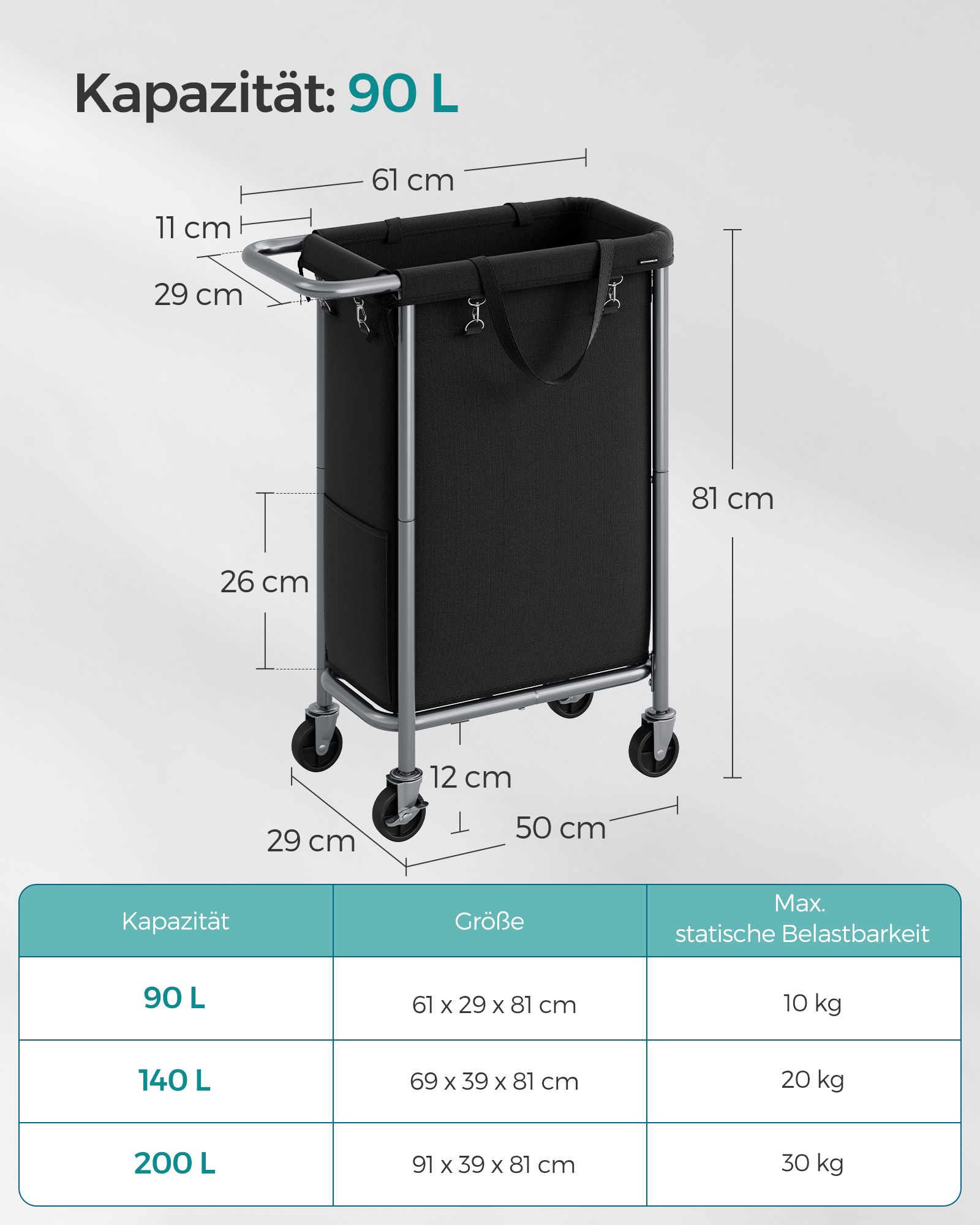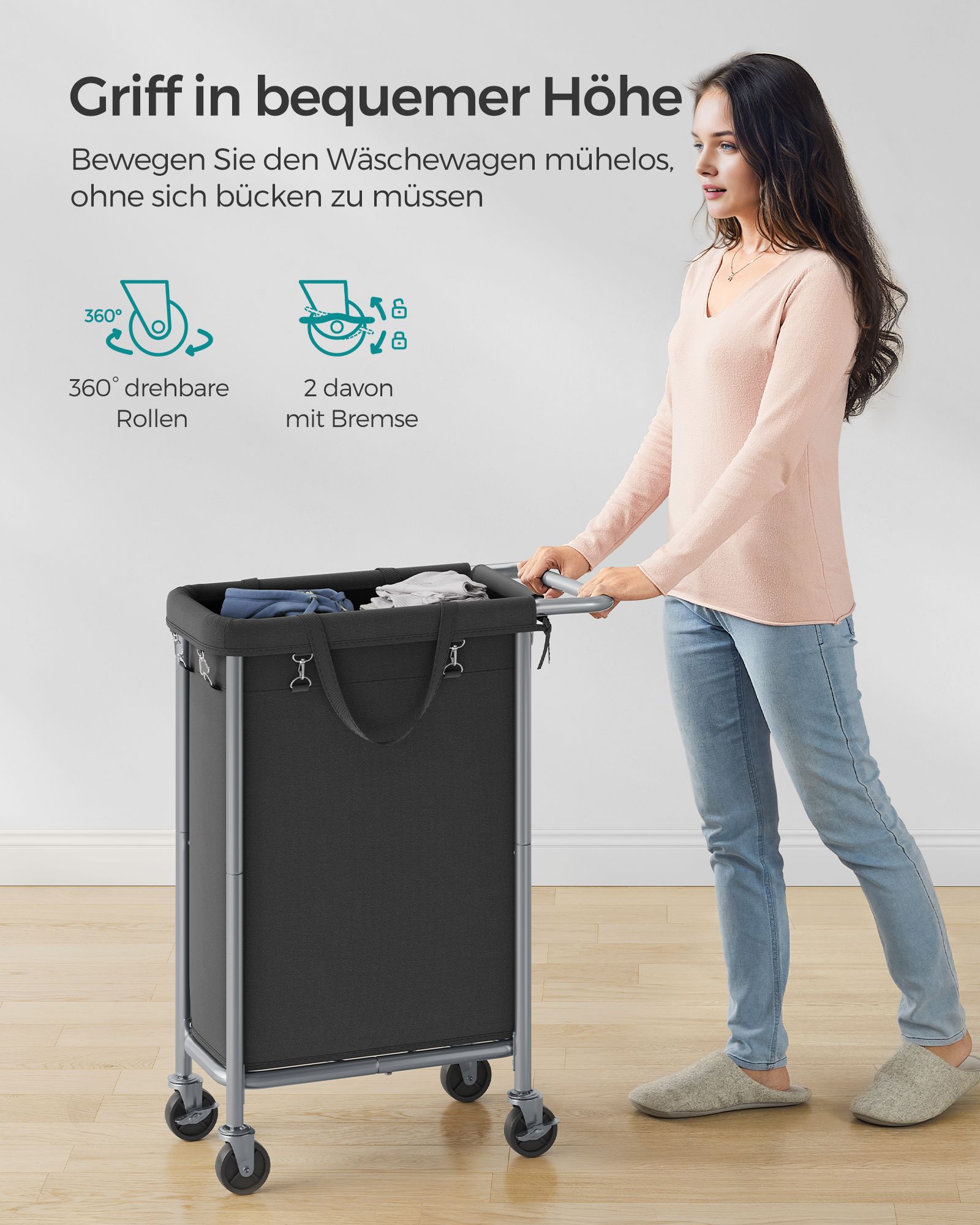 Skalbinių krepšelis ant ratukų 140L – Juodos/Sidabrinės spalvos