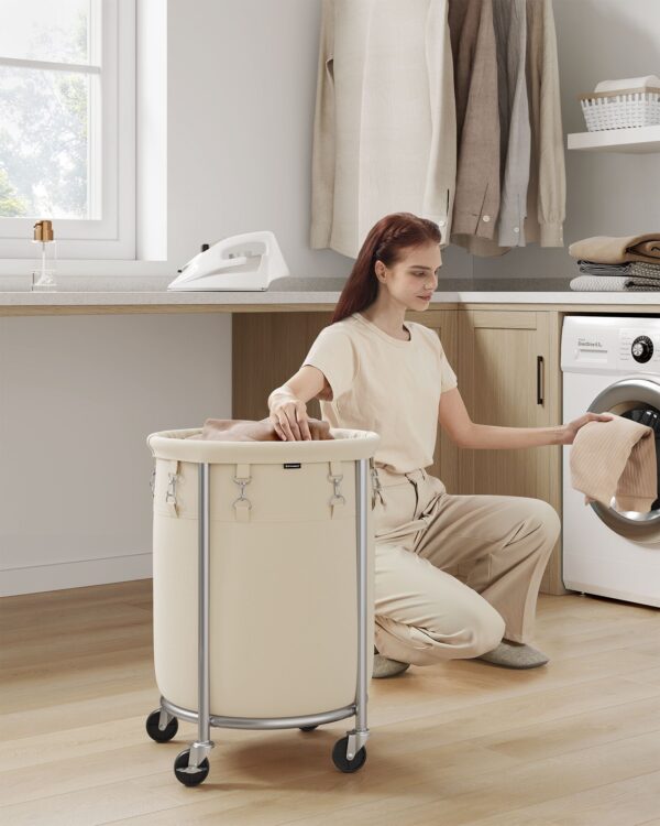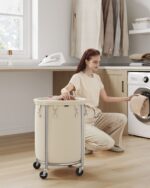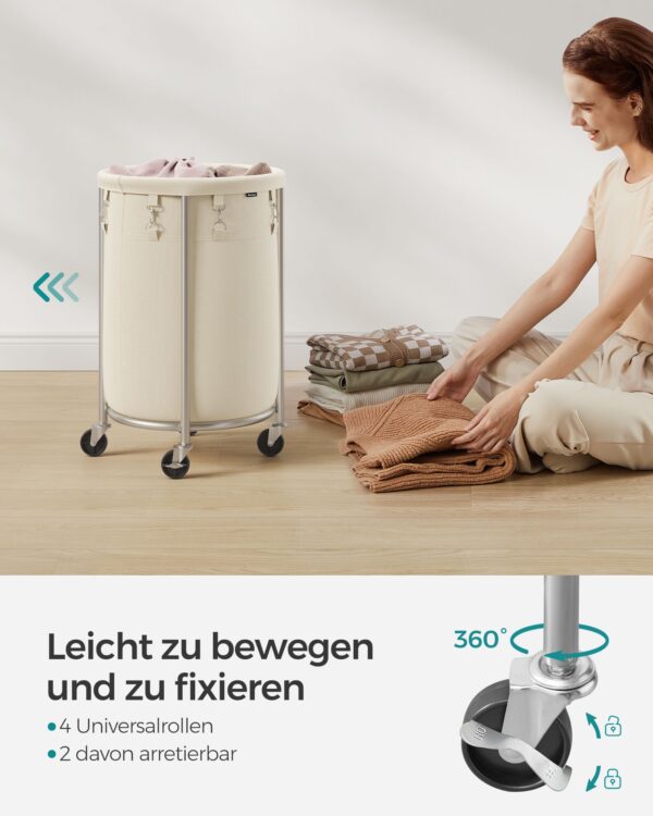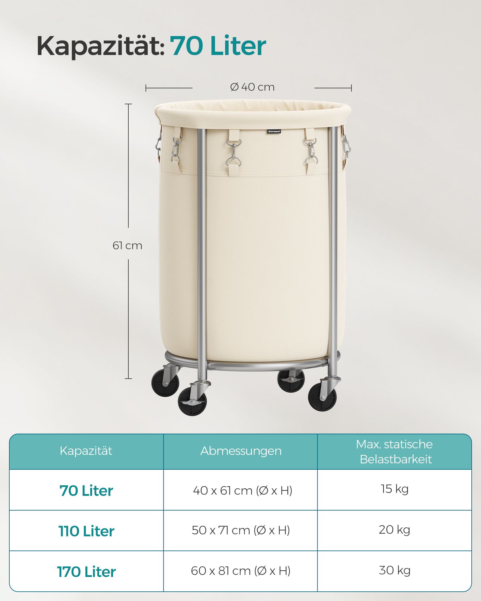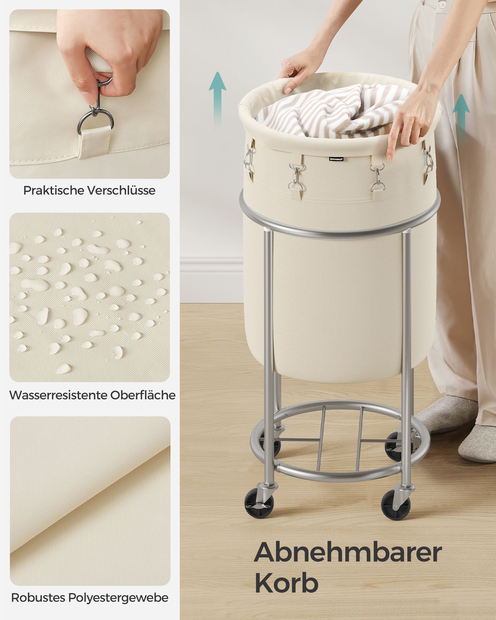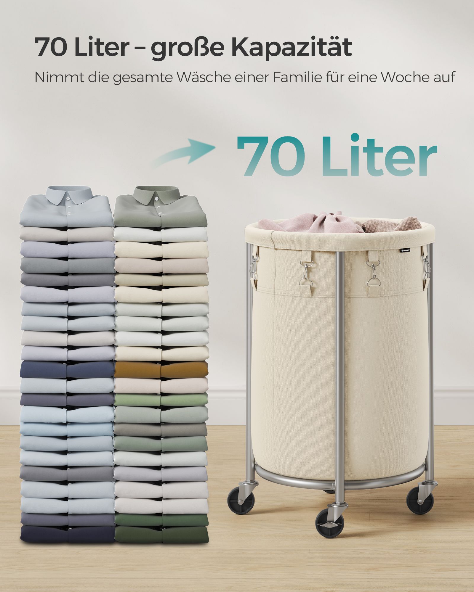 Skalbinių krepšelis ant ratukų 70L – Kreminės/Sidabrinės Spalvos