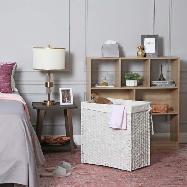 Žinoma, labai patogu nusirengus nešvarius skalbinius tiesiog išmesti ant grindų. Tačiau tai ne tik padaro jūsų namus netvarkingesnius, bet ir reiškia, kad turite praleisti daug laiko rūšiuodami šviesių ir tamsių spalvų drabužius prieš dėdami juos į skalbimo mašiną. Su šiuo skalbinių krepšeliu pagaliau galite atsisveikinti su chaotišku miegamuoju.