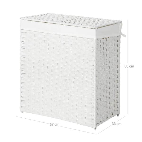 Šis 57 x 33 x 60 cm didelis skalbinių separatorius leidžia rūšiuoti nešvarius skalbinius pagal spalvą ar medžiagą. Skalbinių krepšys pritvirtintas prie krepšio, todėl negali nuslysti žemyn. Be to, jį lengva išimti ir neštis į skalbimo mašiną.