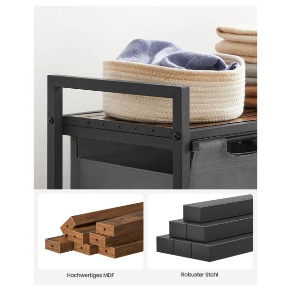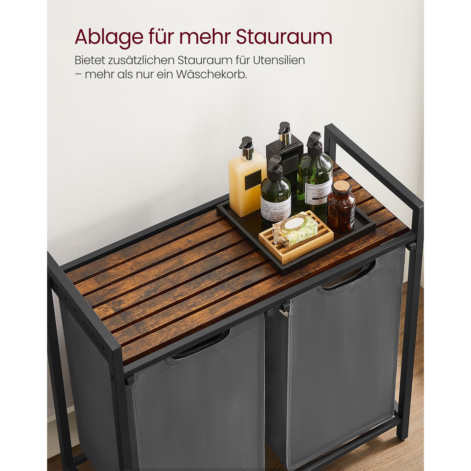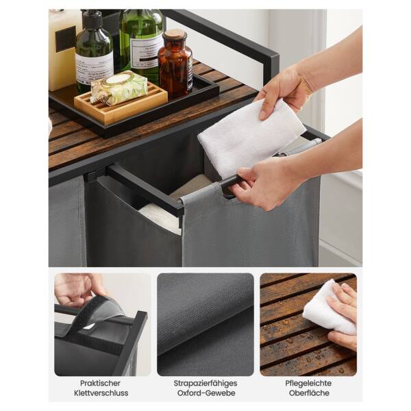 Šis skalbinių krepšelis / spintelė su ištraukiamais skyriais yra puikus sprendimas tvarkai palaikyti. Jo vintažinė ruda-pilka spalva suteikia elegancijos bet kuriam interjerui.