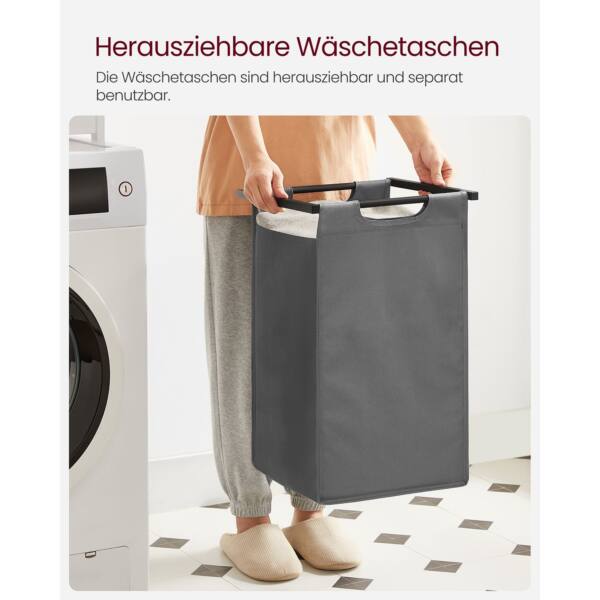 Skalbinių krepšelis / spintelė su ištraukiamais skyriais, pilkos spalvos krepšiai