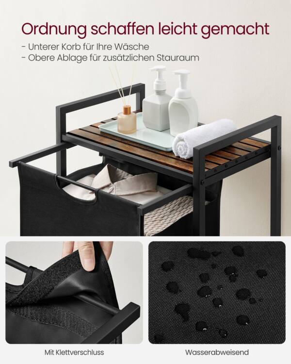 Šis skalbinių krepšelis / spintelė su ištraukiamu skyriu yra puikus sprendimas jūsų namams. Vintažinės juodos spalvos dizainas suteikia elegancijos ir stiliaus bet kuriam kambariui.