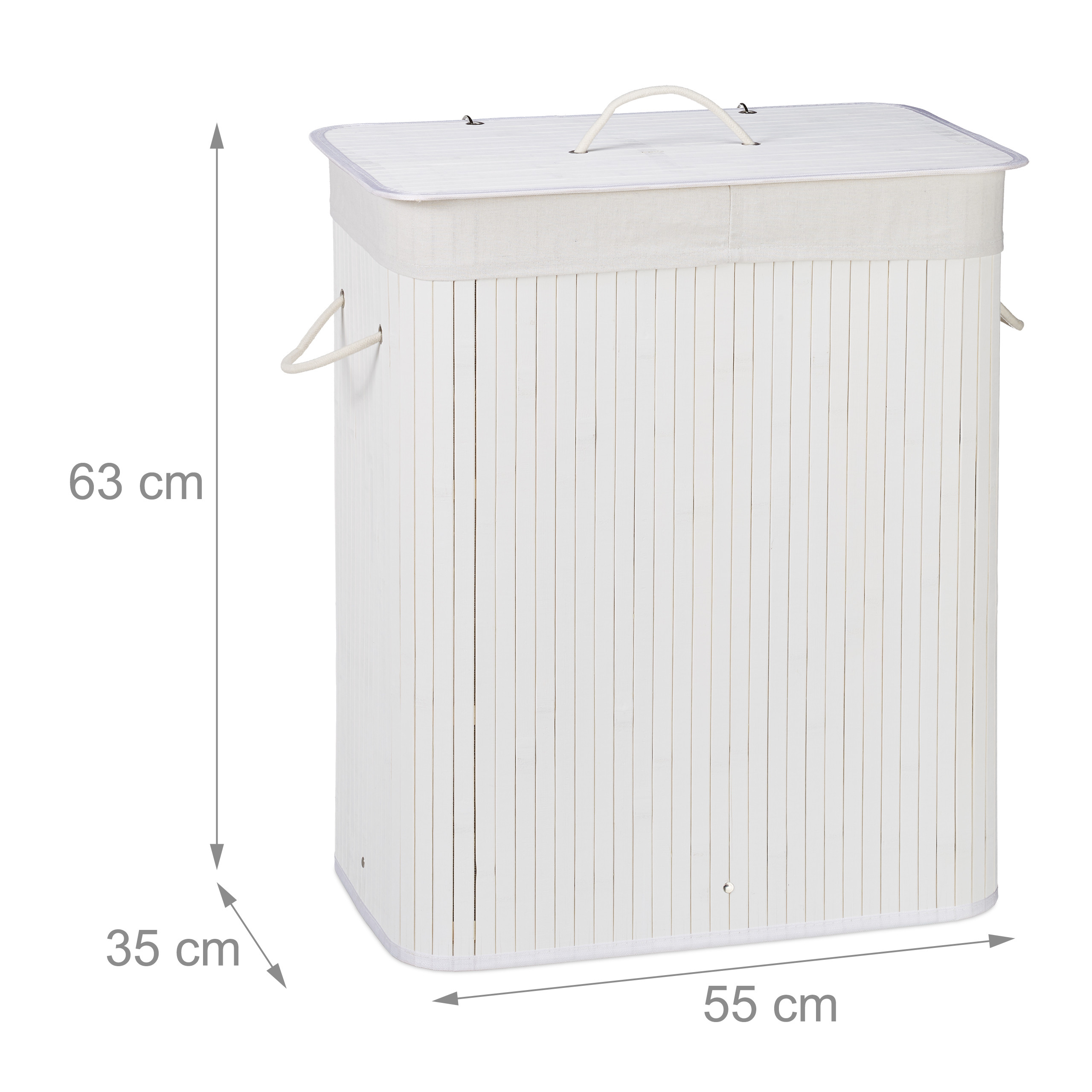 Skalbinių krepšelis su 2 skyriais 63x55x35cm, 95L, baltos spalvos