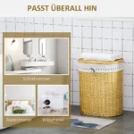 Šis HOMCOM pintų skalbinių krepšelis yra idealus sprendimas kiekvienam namų ūkiui. Taip visi jūsų skalbiniai bus paruošti skalbti ir sutaupysite skalbinių paieškos valandų. Pagaminta iš natūralios pintinės medžiagos, su nuimamu medžiaginiu pamušalu, kad būtų lengviau valdyti. Dangtis užtikrina, kad nebus nemalonaus kvapo.
