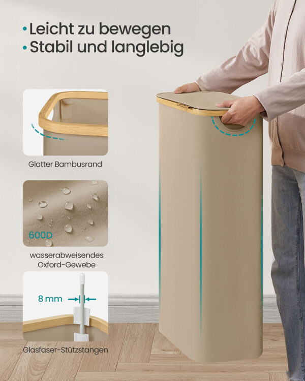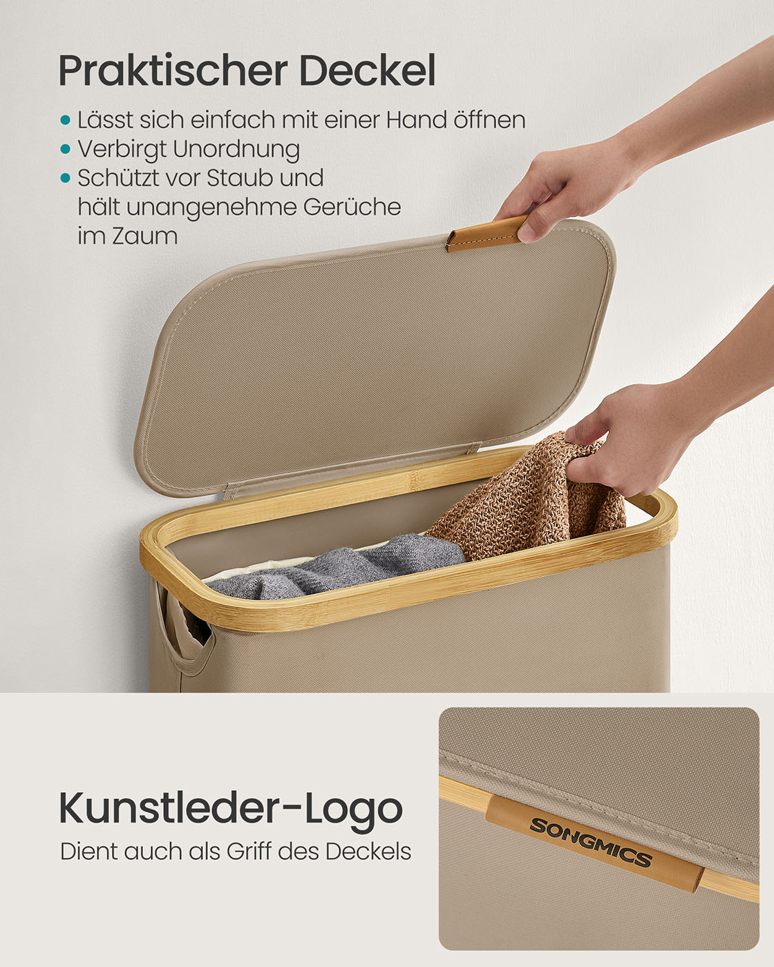 Šis skalbinių krepšys yra puikus pasirinkimas jūsų namams, suteikiantis praktiškumo ir stiliaus. Kupranugario ruda spalva puikiai dera su įvairiais interjero dizainais.
