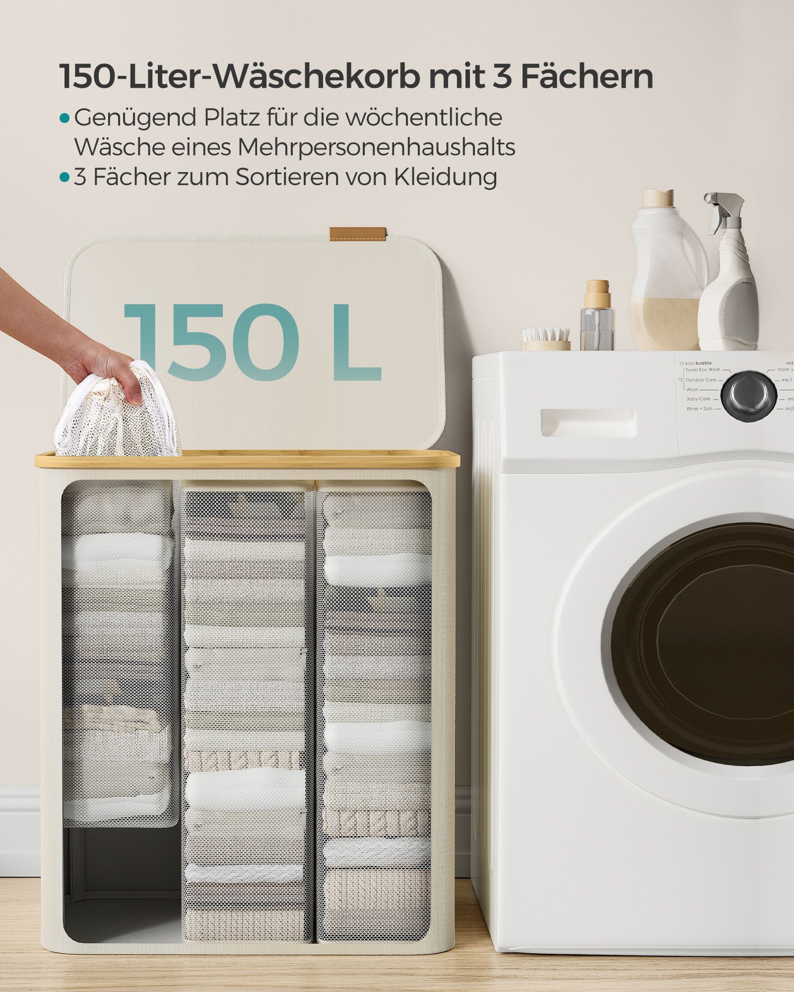 Šis skalbinių krepšys yra puikus pasirinkimas jūsų namams, suteikiantis patogumą ir stilių. Jo kreminė balta spalva puikiai dera su bet kokiu interjeru, o aukštos kokybės medžiagos užtikrina ilgaamžiškumą.