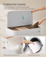 Šis skalbinių krepšys, pagamintas iš bambuko, poliesterio-medvilnės mišinio ir metalinio rėmo, yra puikus pasirinkimas jūsų namams. Jo debesų balta spalva suteikia švaros ir elegancijos jūsų interjerui.