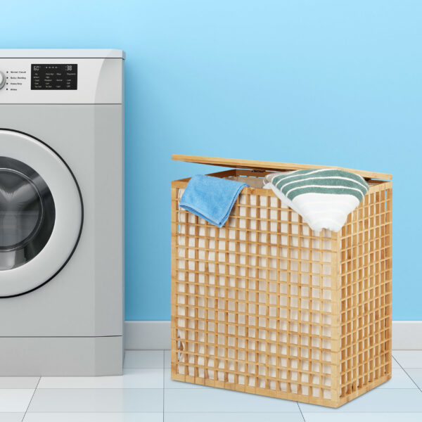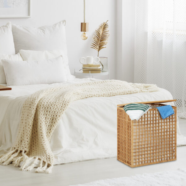 - Aukštos kokybės medžiagos: Pagamintas iš bambuko, šis krepšys yra ne tik tvirtas, bet ir puikiai tinka naudoti drėgnose patalpose, pavyzdžiui, vonios kambaryje.