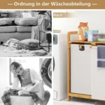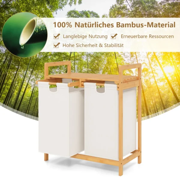 • Skalbinių krepšys pagamintas iš 100% natūralaus bambuko, kuris yra tvirtas, bekvapis ir patvarus.