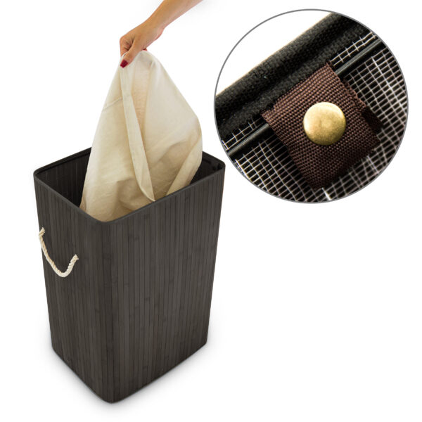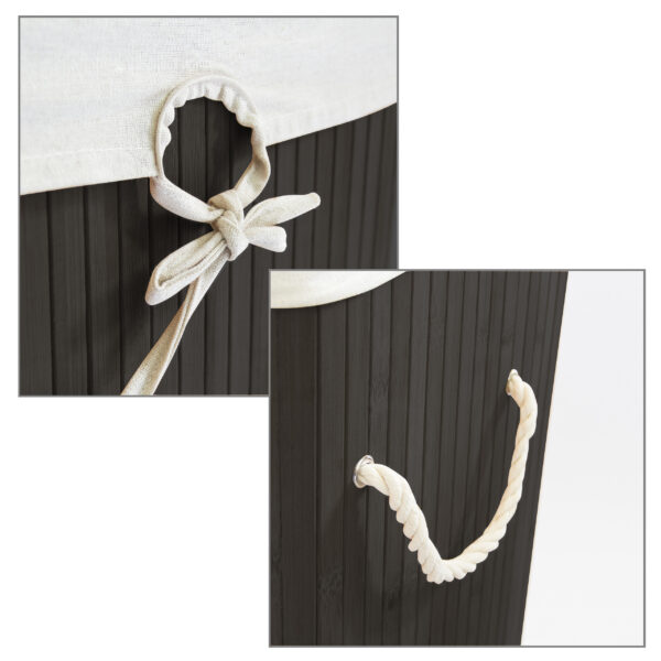 Šis skalbinių krepšys ne tik padės palaikyti tvarką jūsų namuose, bet ir taps stilingu interjero akcentu. Juodos ir kreminės spalvos derinys suteikia modernumo ir elegancijos, todėl jis puikiai derės prie bet kokio interjero.