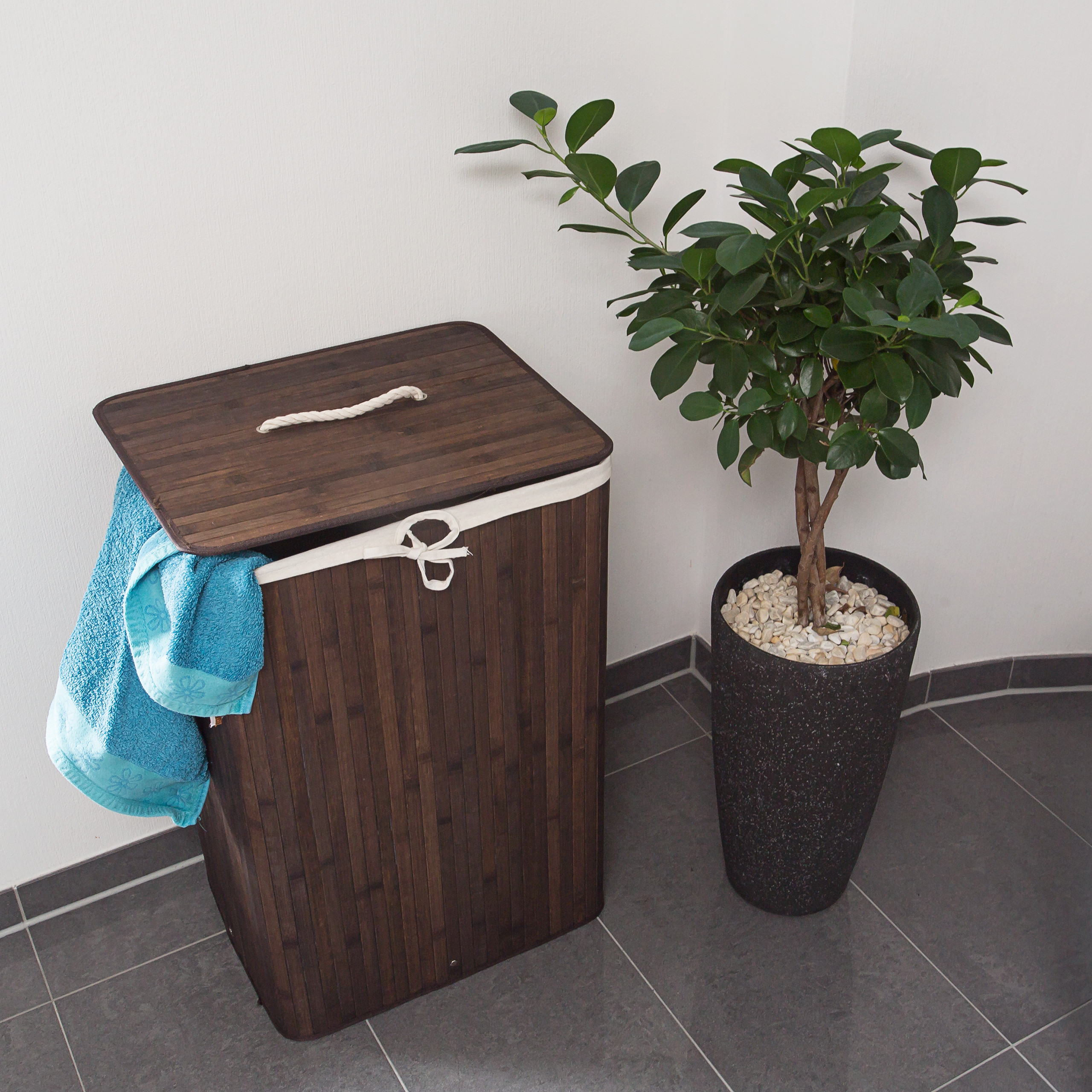Skalbinių krepšys yra itin talpus, todėl galėsite sutaupyti laiko tarp skalbimų. Jis puikiai tinka tiek miegamajam, tiek vonios kambariui, nes bambukas gerai prisitaiko prie drėgnos aplinkos.