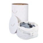 Pristatome elegantišką ir funkcionalų skalbinių krepšį, kuris puikiai tiks jūsų namų interjerui. Šis dekoratyvinis krepšys ne tik padės palaikyti tvarką, bet ir taps stilingu akcentu jūsų vonios kambaryje ar miegamajame.
