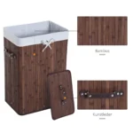 - ‚úî Medžiaga: bambukas, skalbinių krepšys iš drobės, rankenos iš PU