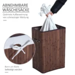 Labai patrauklus skalbinių krepšelis iš tikro bambuko su erdvia saugykla! Natūralus bambuko užvalkalas yra lengvai prižiūrimas ir išlaiko savo formą. Dėl to krepšys tinka drėgnoms patalpoms, tokioms kaip vonios kambariai ir rūsiai. Lengvai išimamas drobinis skalbinių krepšys yra kvėpuojantis ir patvarus. Kartu su dviem rankenomis galite lengvai nunešti nešvarius drabužius į skalbimą. Dangčio ir skylučių apačioje jums nereikia jaudintis dėl pelėsių ir kvapų atsiradimo ant drabužių!
