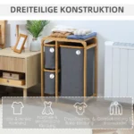 Stilingai ir diskretiškai paslėpkite negražias skalbinių krūvas su šiuo HOMCOM skalbinių krepšeliu. Įrengti 3 medžiaginiai maišeliai, kurie per savaitę sutaupo kelias minutes, kad atskirtumėte skalbinius, tokius kaip apatiniai ir viršutiniai, šviesios ir tamsios spalvos. Lengvas dizainas leidžia lengvai transportuoti. Be to, šis skalbinių krepšelis užima mažai vietos, todėl tinka mažoms patalpoms. Tai gerokai sutrumpins skalbimo dienas jūsų gausiai šeimai.
