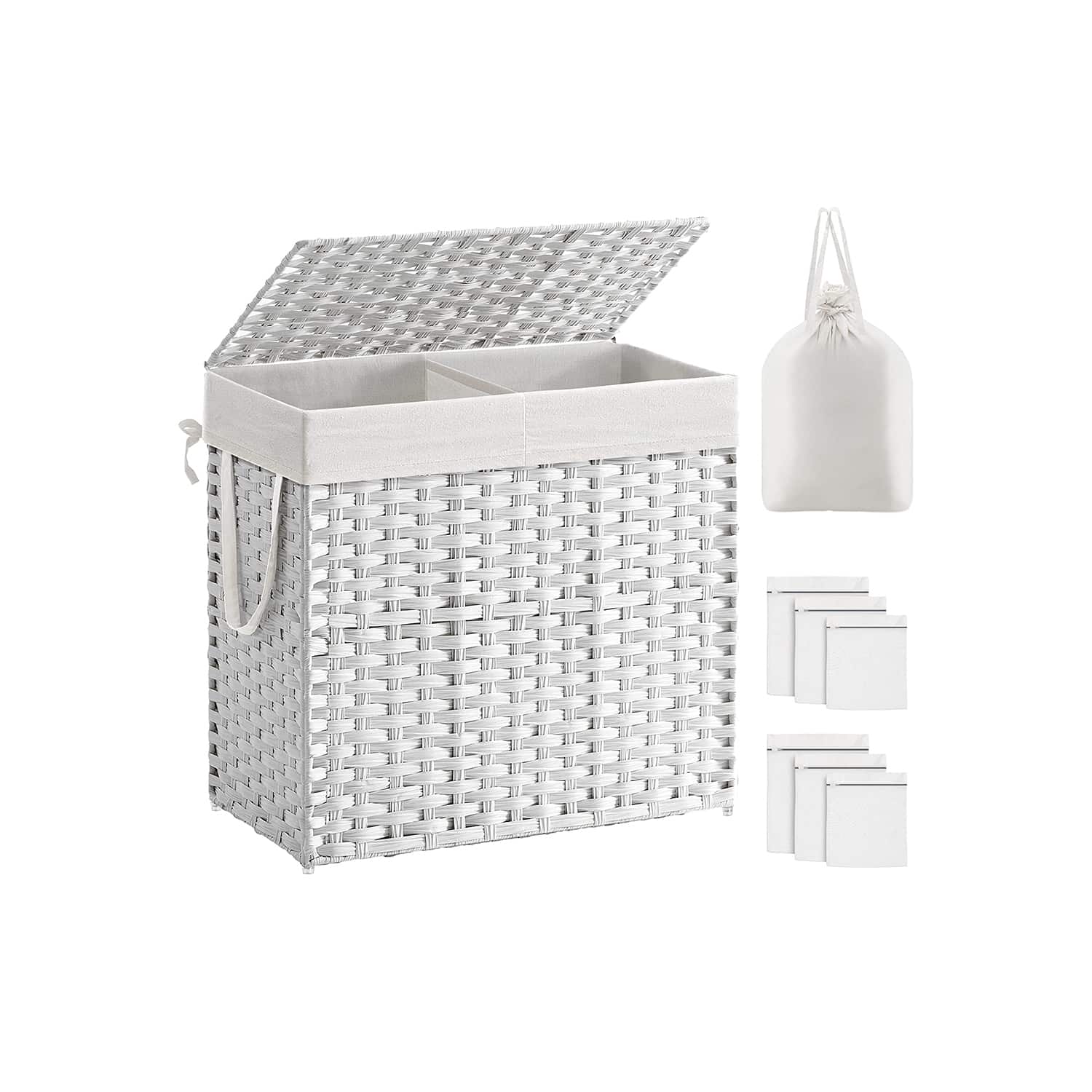 Skalbinių krepšys su dangčiu ir priedais, baltos spalvos