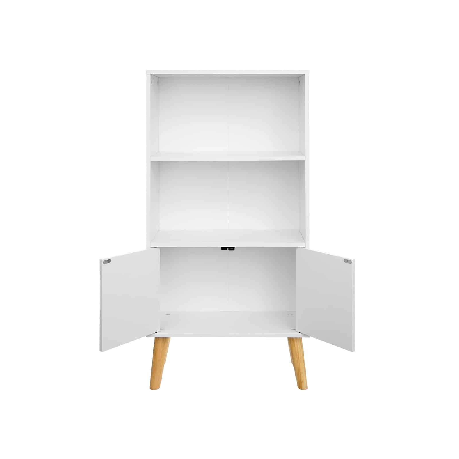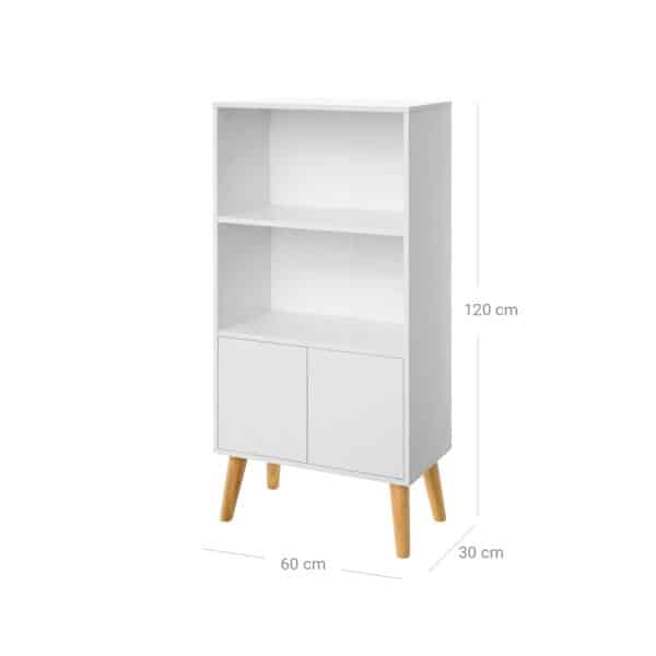 Modernūs baldai jūsų namams. Yra priežastis, kodėl modernūs baldai yra tokie populiarūs: jie tiesiog puikiai atrodo bet kur ir bet kada. Ši skandinaviška knygų spinta tinka daugeliui interjero stilių ir puikiai atrodo jūsų svetainėje, darbo kambaryje ar biure. Su 2 aukštais lentynų lygiais ir 2 spintelės durelėmis, kurios atsidaro švelniai paspaudus, ši knygų spinta suteikia daug vietos įvairiems daiktams ir leidžia greitai pasiekti knygas.