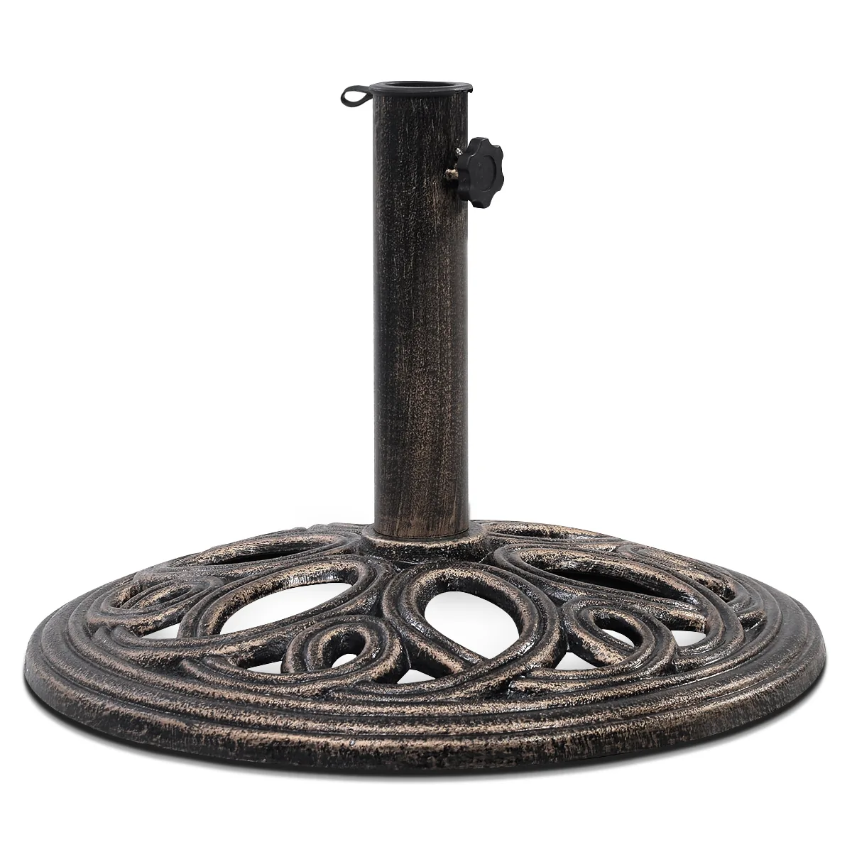 Skėčio pagrindas 45×32 cm, bronzinės spalvos, skirtas užtikrinti skėčio stabilumą įvairiose lauko ir vidaus erdvėse. Pagamintas iš ilgaamžio ketaus, jis pritaikytas atlaikyti vėjo ir saulės poveikį bei išlaikyti skėtį tvirtai stovintį net ir vėjuotomis sąlygomis.