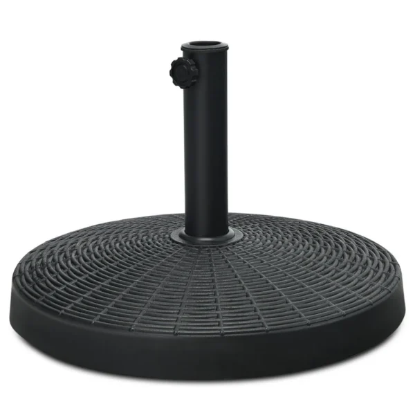 Skėčio pagrindas 52×36 cm, juodos spalvos, yra patvarus ir stabilus sprendimas lauko skėčiams. Pagamintas iš dervos, jis atsparus saulės poveikiui, vandeniui ir korozijai, todėl tinkamas naudoti terasose, balkonuose ar sode. Pagrindas pritaikytas 38 mm ir 48 mm skersmens skėčio kotams, užtikrinantis patikimą atramą.