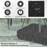- Užvalkalas iš poliesterio audinio, atsparus oro sąlygoms ir dilimui.