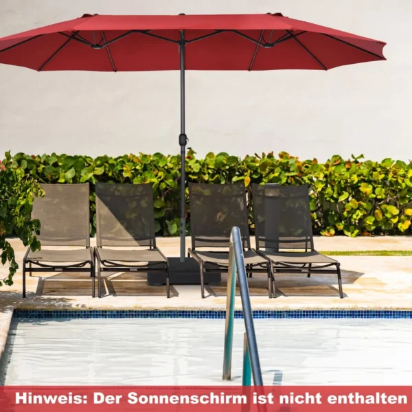 Skėčio pagrindas 73x73x41cm, juodos spalvos, suteikia patikimą atramą lauko skėčiams. Jis tinkamas įvairių tipų skėčiams ir skirtas naudoti terasose, prie baseino ar sode. Patikima konstrukcija užtikrina stabilumą net vėjuotomis dienomis.