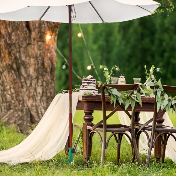 Pasirinkite mūsų skėčių stovą ir mėgaukitės poilsiu be rūpesčių dėl skrendančių skėčių. Tiesiog prijunkite jį ir atsipalaiduokite!