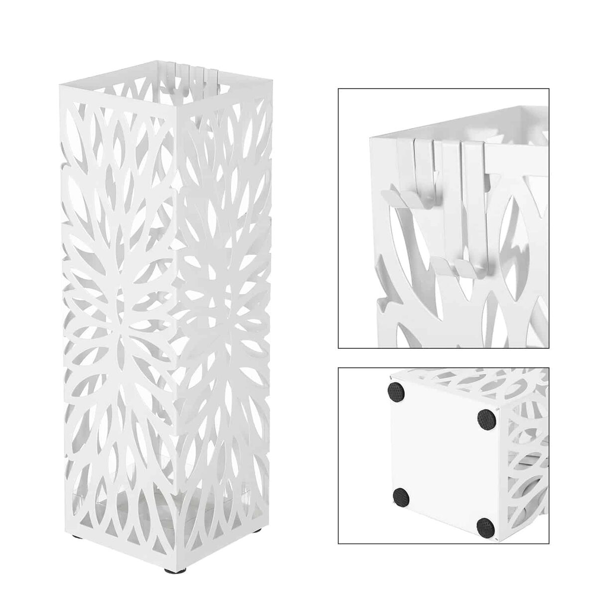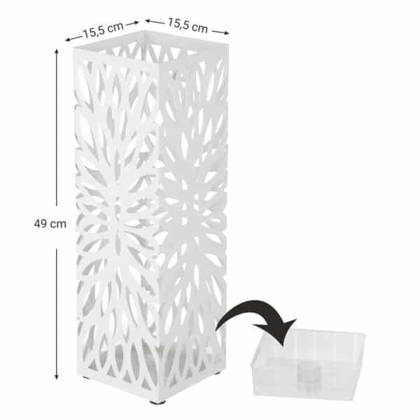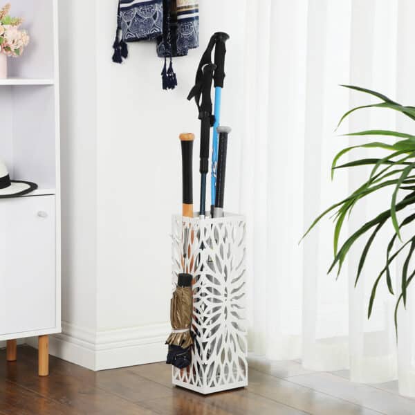 Šis geležinis skėčių stovas yra ir funkcionalus, ir stilingas. Jis ne tik suteikia galimybę laikyti skėčius, bet ir papuošia jūsų erdvę, patraukdamas akį prieškambaryje ar įėjime.