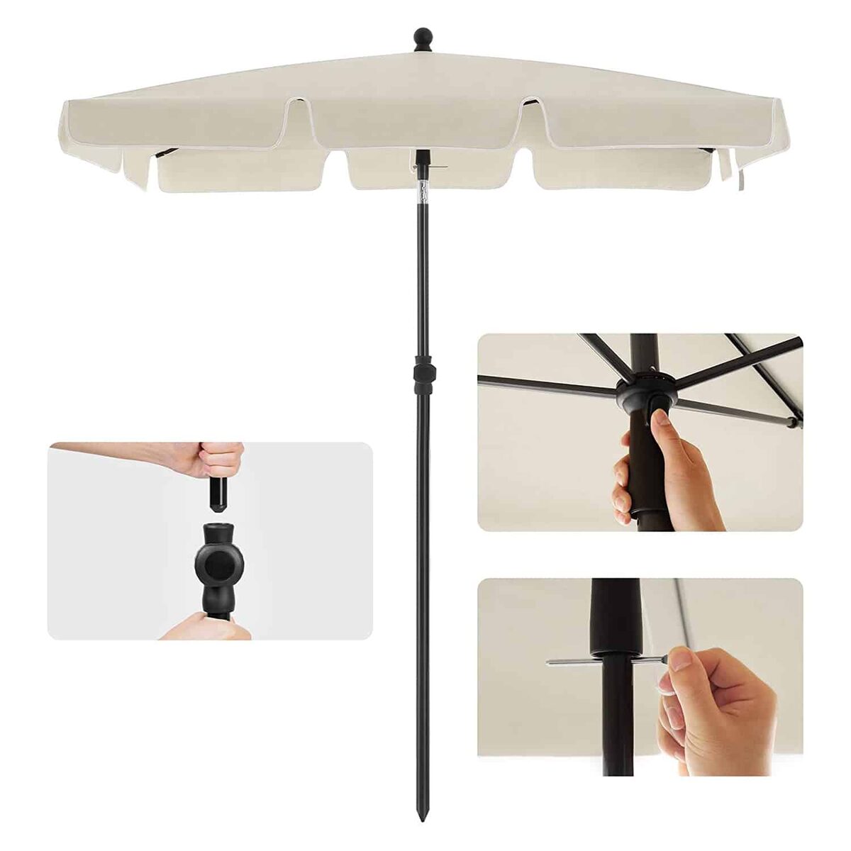 Kokios naudos galite tikėtis iš šio skėčio? Puiki apsauga nuo saulės? Taip! Iki UPF 50+. Reguliuojamas pakreipimo kampas ir aukštis? Taip! Dėl tvirto cinko lydinio sulankstymo mechanizmo ir praktiškos sukamosios rankenėlės. Geras stabilumas pučiant silpnam vėjui? Taip! Dėka skėčio stulpo, pagaminto iš milteliniu būdu dengto metalo, ir 4 papildomų sutvirtinimo stulpų.