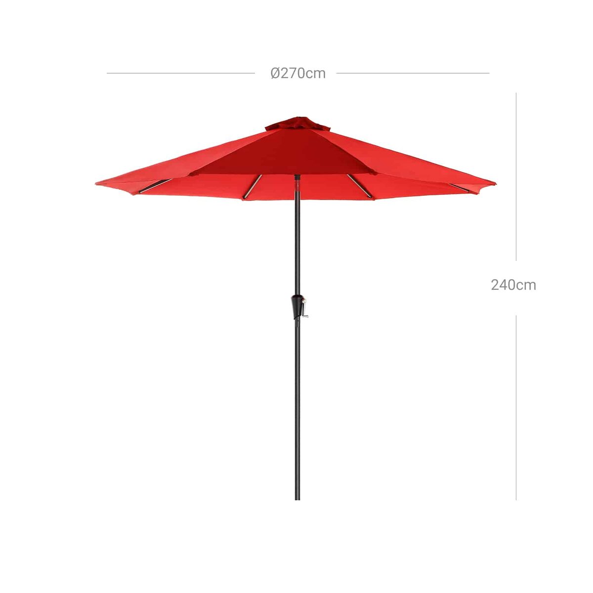 - Medžiaga: Metalinis skėčio stulpas, 180 g/m² poliesterio audinys