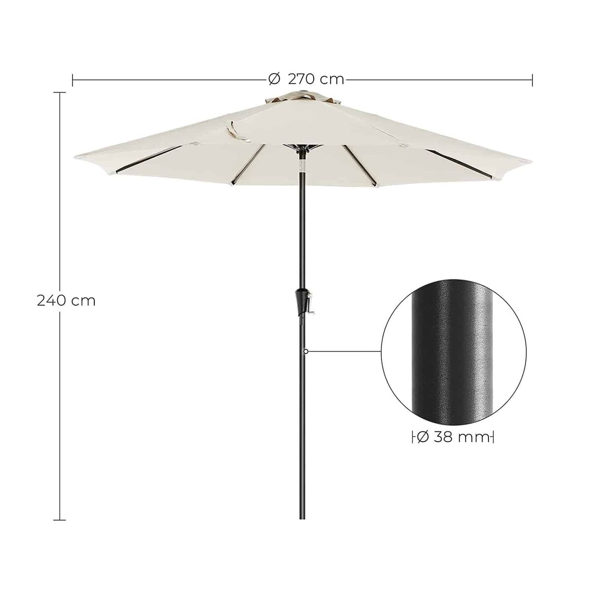Mėgaukitės gražiu oru pavėsyje su mūsų skėčiu Ø 270 cm smėlio spalvos! Lauko sezonas prasidėjo, tad metas keliauti į sodą, terasą ar paplūdimį. Tačiau nepamirškite tinkamos apsaugos nuo saulės!