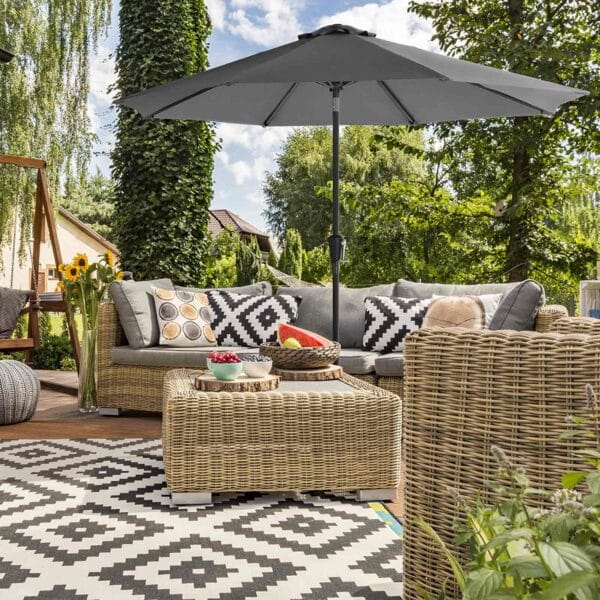 Mėgaukitės gražiu oru pavėsyje! Lauko sezonas prasidėjo ir metas keliauti į sodą, terasą ar paplūdimį! Bet saugokis! Pagalvokite apie tinkamą apsaugą nuo saulės! Kai po ilgų, šaltų žiemos dienų pagaliau susigrąžinate savo lauko erdvę ir pasikviečiate draugus ant grotelių, atėjo puiki akimirka pasinaudoti naujuoju SONGMICS skėčiu!