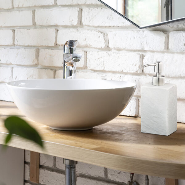 Pristatome elegantišką ir funkcionalų skysto muilo dozatorių, pagamintą iš dirbtinio akmens, kuris puikiai papildys jūsų vonios kambario ar virtuvės interjerą. Šis dozatorius ne tik užtikrina efektyvią rankų higieną, bet ir suteikia jūsų erdvei modernų akcentą.