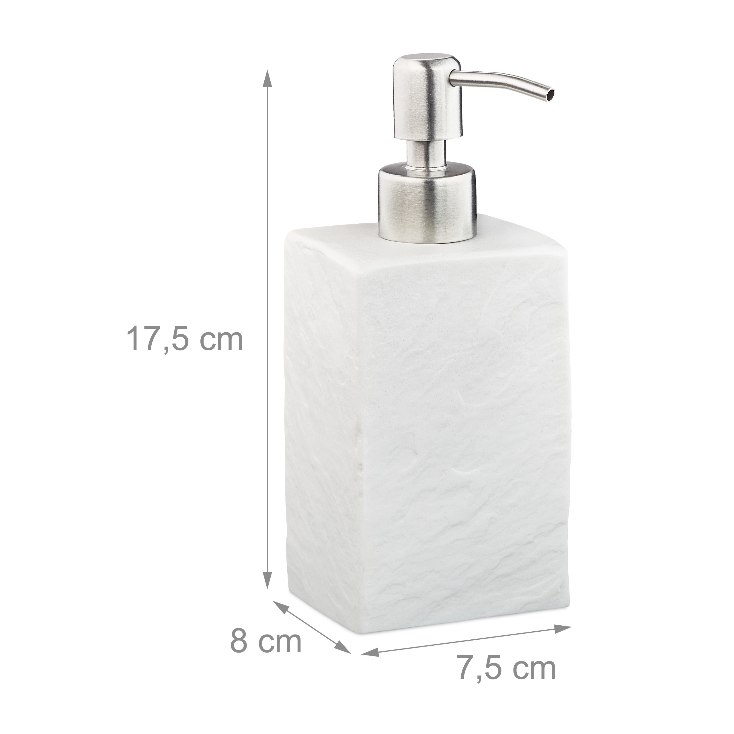 Skysto muilo dozatorius 17,5×7,5×8 cm, baltos/sidabrinės spalvos