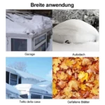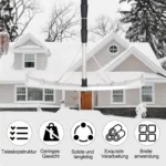 - Teleskopinio stulpo aukštis reguliuojamas nuo 190 cm iki 640 cm, leidžiantis lengvai nuvalyti sniegą nuo įvairių aukščių.