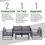 - ✔ Modernus, keturių dalių sodo komplektas. Stilingas ir patogus