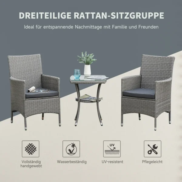 Sodo baldų komplektas iš 3 dalių Outsunny, pilkos spalvos