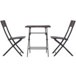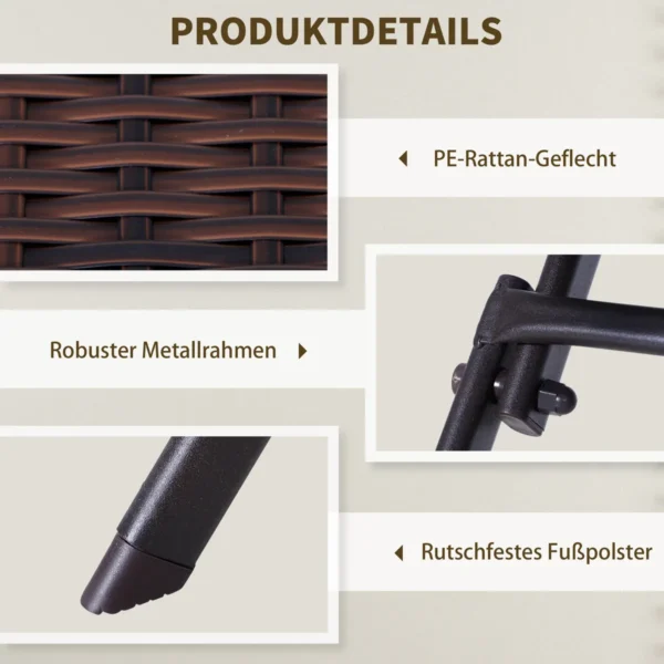 Mūsų elegantiškas bistro rinkinys suteikia galimybę patekti į nuostabų polirotango baldų pasaulį. Balkone arba sode galėsite mėgautis gyvais pokalbiais, klasikinėmis kavos pertraukėlėmis ir poilsiu. 3 dalių sodo komplektą sudaro dvi sulankstomos kėdės ir stalas su juodo rotango stalviršiu. Sodo komplektas pagamintas iš patvaraus metalo ir rankomis austo polirato, kad būtų atsparus oro sąlygoms. Mėgaukitės ateinančiu pavasario ir vasaros sezonu su savo bistro rinkiniu.