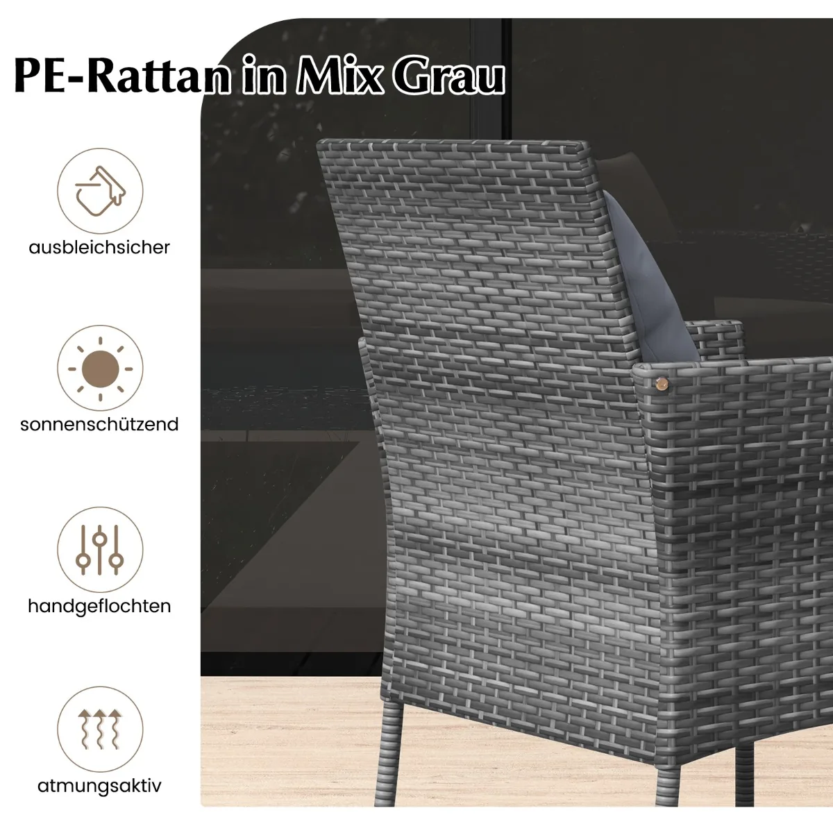 - Komplektas pagamintas iš UV spinduliams ir blukimui atsparaus pilko PE rotango.